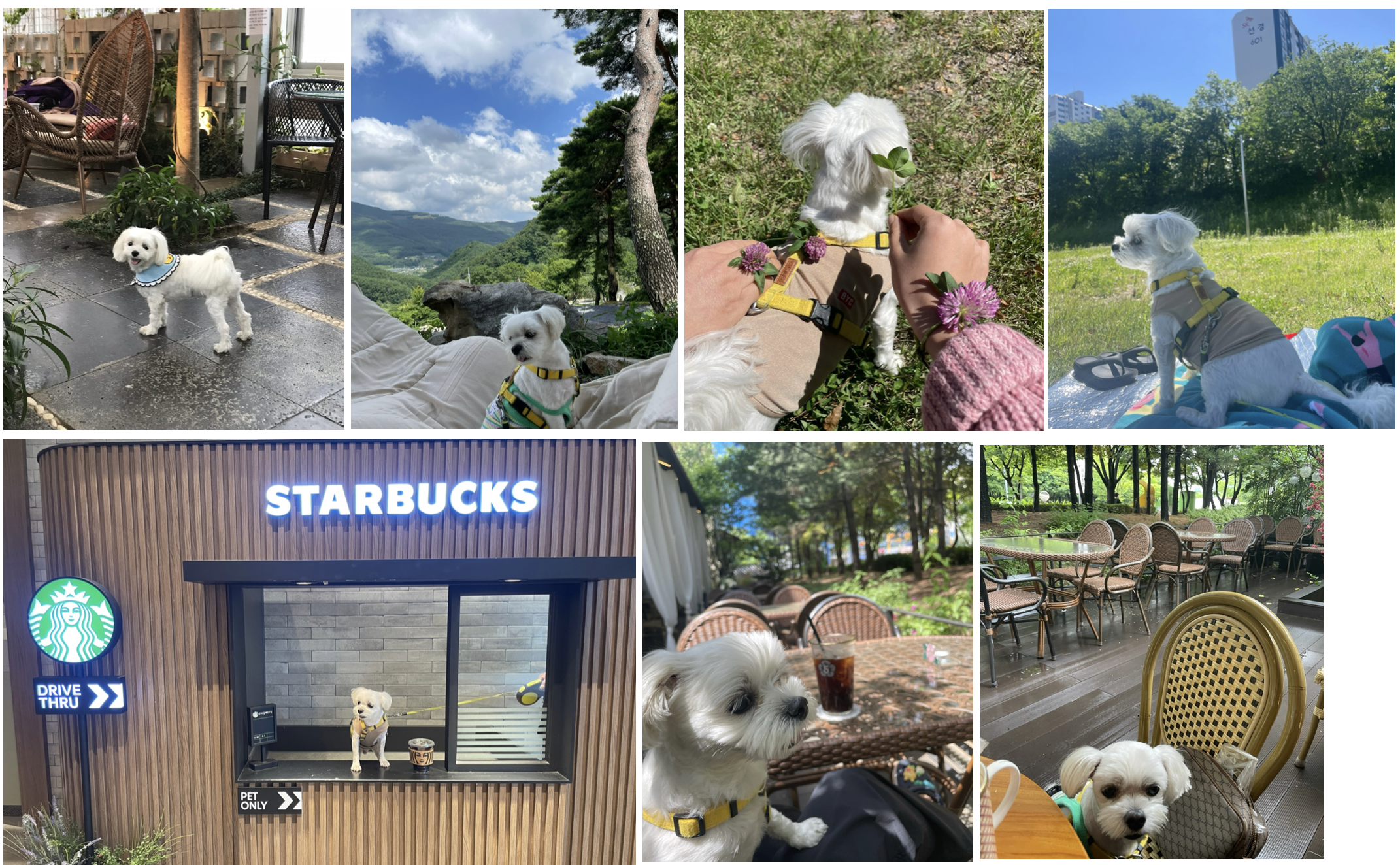 구리의 펫프렌들리 스타벅스 카페가 애견인들에게는 정말 유명한데 놀금때는 댕댕이 전용 포토월에서 예쁜 독사진을 남길 수 있을 정도로 여유롭습니다. 금요일에 쉬다보니 주말에 극악의 난이도를 자랑하는 유명한 카페나 식당 가는 걸 두려워할 필요가 없어졌습니다!
