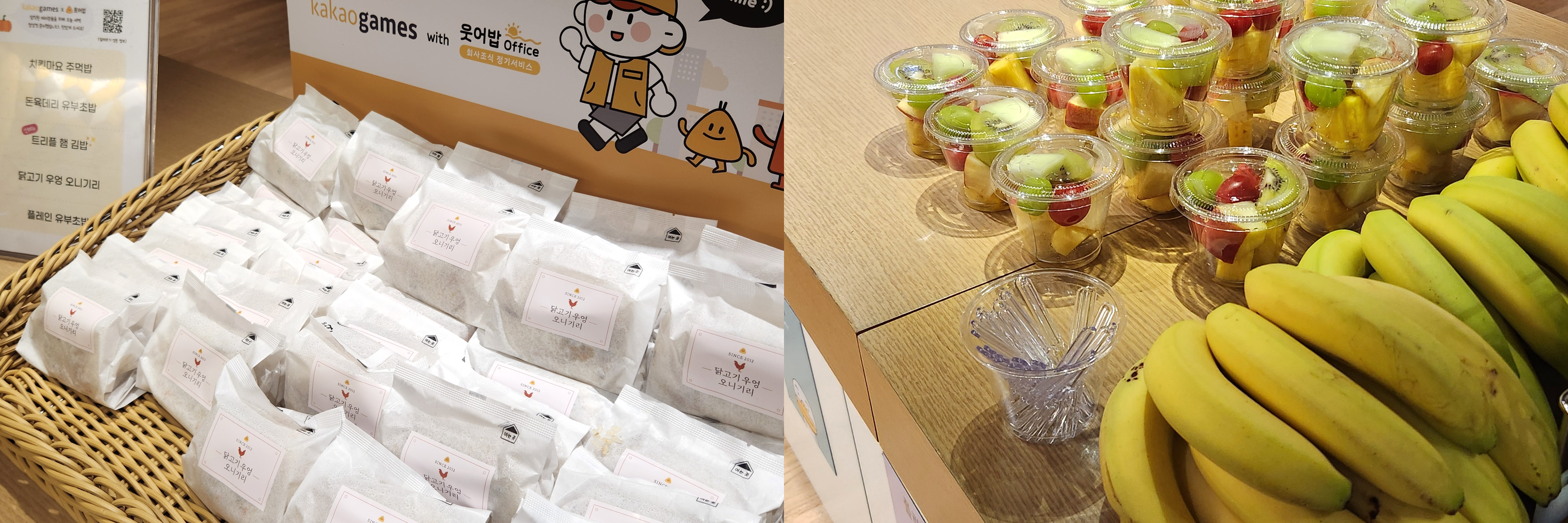 이제는 출근길에 라운지나 카페테리아에 들러, 조식을 고르는 게 하루의 시작이 되었죠! 든든한 주먹밥, 상큼한 과일컵, 간편한 바나나 중 무엇을 먹을지 매일 아침 행복한 고민을 하게 됐습니다.