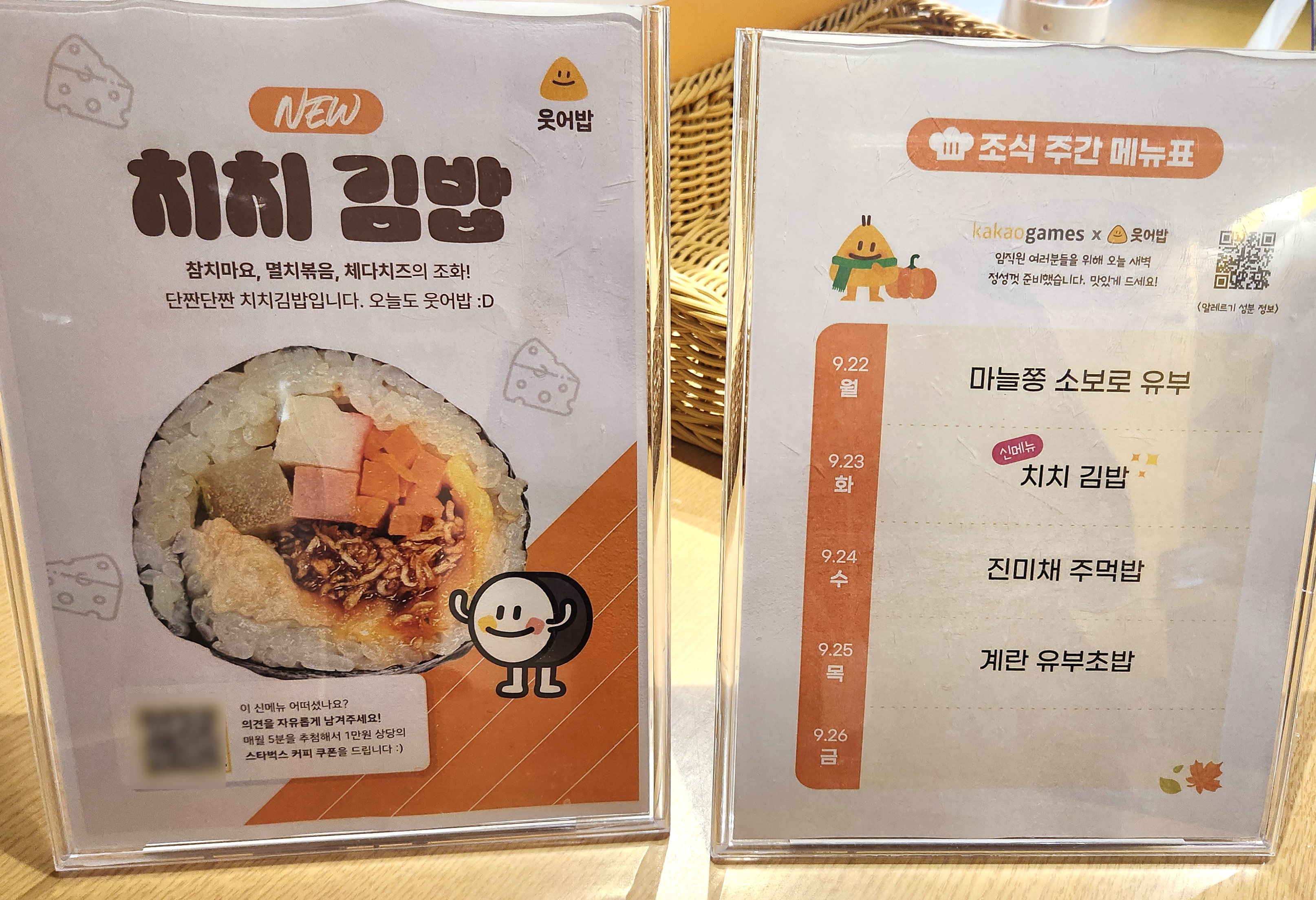 특히, 주먹밥은 요일마다 다른 메뉴가 준비되는데요. 월요일엔 이번 주 조식 라인업을 확인하는 재미가 있습니다! 특히 최애 메뉴나 신메뉴가 나오는 날은 기억해 뒀다가 꼭 주먹밥을 선택한답니다!
